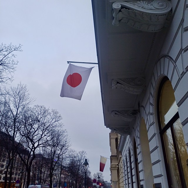 奥に見える赤白の国旗はどこのものだかご存じ?